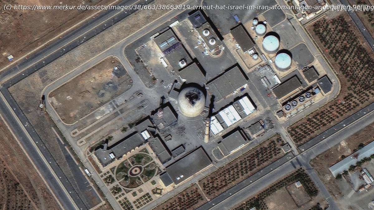 Teheran – Seit über einer Woche hält der Krieg zwischen dem Iran und Israel an. Am siebten Tag der Angriffe hat Israel einen im Bau befindlichen Atomreaktor im Zentraliran zerstört. Satellitenbilder zeigen ein Loch im Kuppeldach der Anlage, das durch eine Explosion entstanden ist. Die Internationale Atomenergiebehörde (IAEO) bestätigte die Schäden und erklärte, dass bei dem Angriff kein Kernmaterial gefunden wurde. Dabei soll es sich um den Schwerwasser-Reaktor Arak handeln, das rund 240 km südwestlich der Hauptstadt Teheran liegt. Mit ihrem Angriff wollte Israel nach eigenen Angaben, dass in der Anlage waffenfähiges Plutonium hergestellt wird.