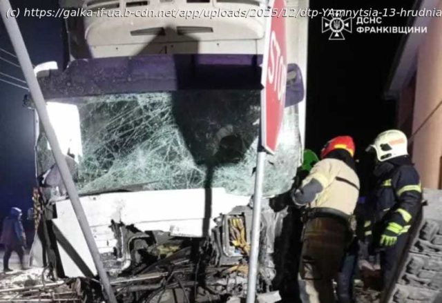 Уночі 13 грудня у селі Ямниця Ямницької територіальної громади Івано-Франківського району трапилась дорожньо-транспортна пригода. Про це пише “Галка” з посиланням на ГУ ДСНС в Івано-Франківській області. За попередньою інформацією, водій вантажного автомобіля здійснив наїзд на бетонну огорожу. Внаслідок аварії двоє осіб опинилися затиснутими металевими конструкціями транспортного засобу. Рятувальники прибули на місце події та провели роботи…Уночі 13 грудня у селі Ямниця Ямницької територіальної громади Івано-Франківського району трапилась дорожньо-транспортна пригода.