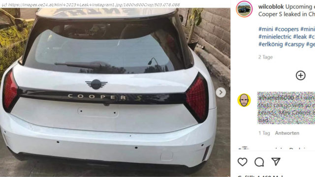 Vor einigen Wochen hat Mini erste offizielle Informationen zur nächsten Generation des 3-Türers (kommt auch wieder als Cabrio) veröffentlicht. Dabei hat die BMW -Tochter u.a. verraten, dass es sich dabei um die letzte Version, die auch mit Verbrennungsmotoren zu haben sein wird, handeln und dass die Elektro-Version in China vom Band laufen wird. Darüber hinaus wurden einige Fotos von stark getarnten Prototypen veröffentlicht, die noch nicht allzu viel über das Seriendesign preisgaben. Doch aufgrund eines veritablen Leaks wurde jetzt bereits lange vor der eigentlich geplanten Weltpremiere bekannt, wie die völlig neue Mini-Generation aussehen wird. An der Front gibt es dabei keine allzu großen Überraschungen. Bei dem am Instagram-Account wilcoblok geleakten Modell dürfe es sich um die Elektroversion Copper SE handeln.