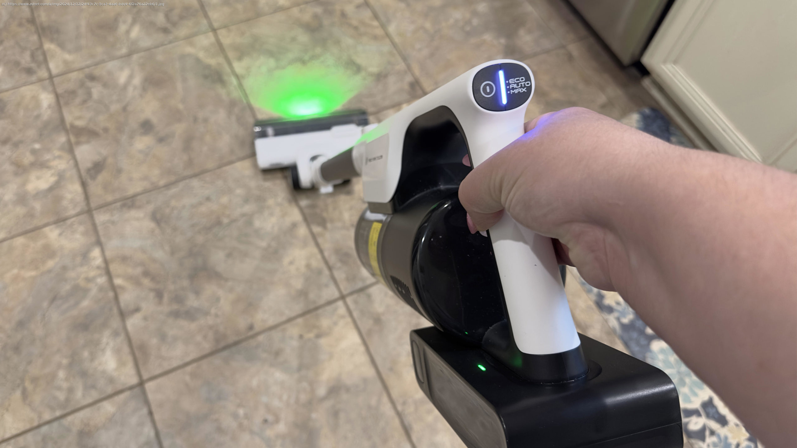 When I began using the Tineco Pure One Station 5, the first thing that caught my attention was the bright green light illuminating its path. Although it initially seemed gimmicky, it proves invaluable the more you vacuum with it.