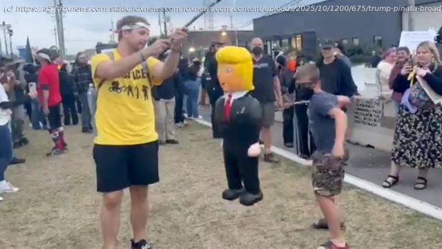 Protesters at a „No Kings“ demonstration in Chicago were filmed bashing a pinata resembling President Donald Trump Saturday.