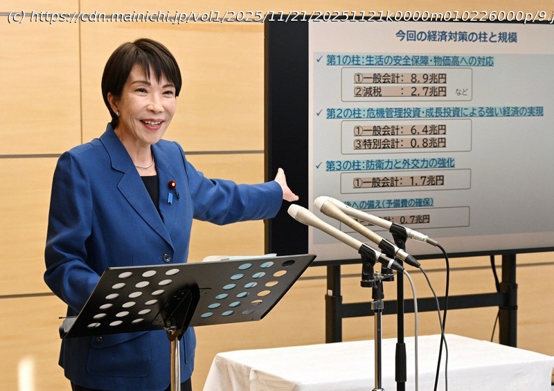 Start Japan Japan — in Japanese 経済対策21・3兆円 高市首相「積極財政で国力強く」 閣議決定 JapanJapan — in Japanese 経済対策21・3兆円 高市首相「積極財政で国力強く」 閣議決定 Von admin - November 21, 2025 78 0 TEILEN Facebook Twitter