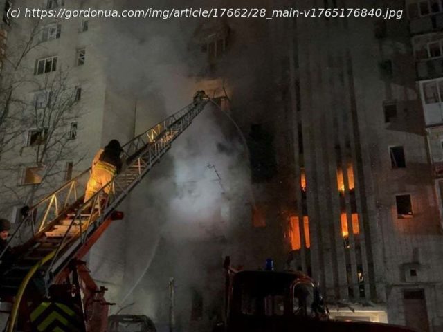 Россияне ночью 8 декабря атаковали дронами Ахтырку в Сумской области, в результате чего возник пожар в многоэтажке.