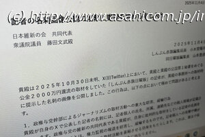 記者の名刺をX上で公開 維新・藤田共同代表に赤旗が削除申し入れ