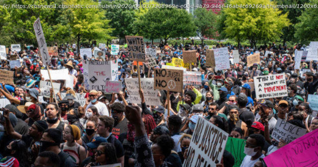 George Floyd’s family joined tens of thousands of people at a march and rally in downtown Houston on Tuesday. It follows days of clashes between demonstrators and police nationwide.