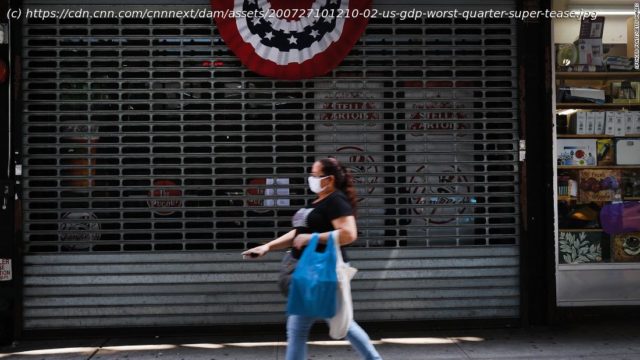 The US economy contracted at a 32.9% annual rate from April through June, its worst drop on record, the Bureau of Economic Analysis said Thursday.