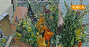 Frauen binden Kräuterbüschel zum Marienfest in Neuburg