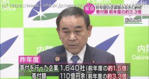 「企業版ふるさと納税制度」昨年度の寄付額 前年度の約3.3倍に