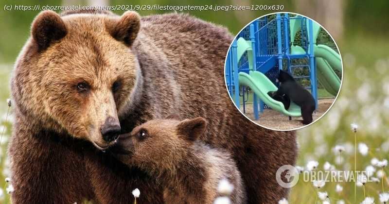 В сети разместили ролик, в котором медведи играли на детской площадке на территории школы. Такое заметили местные жители штата Северная Каролина (США).