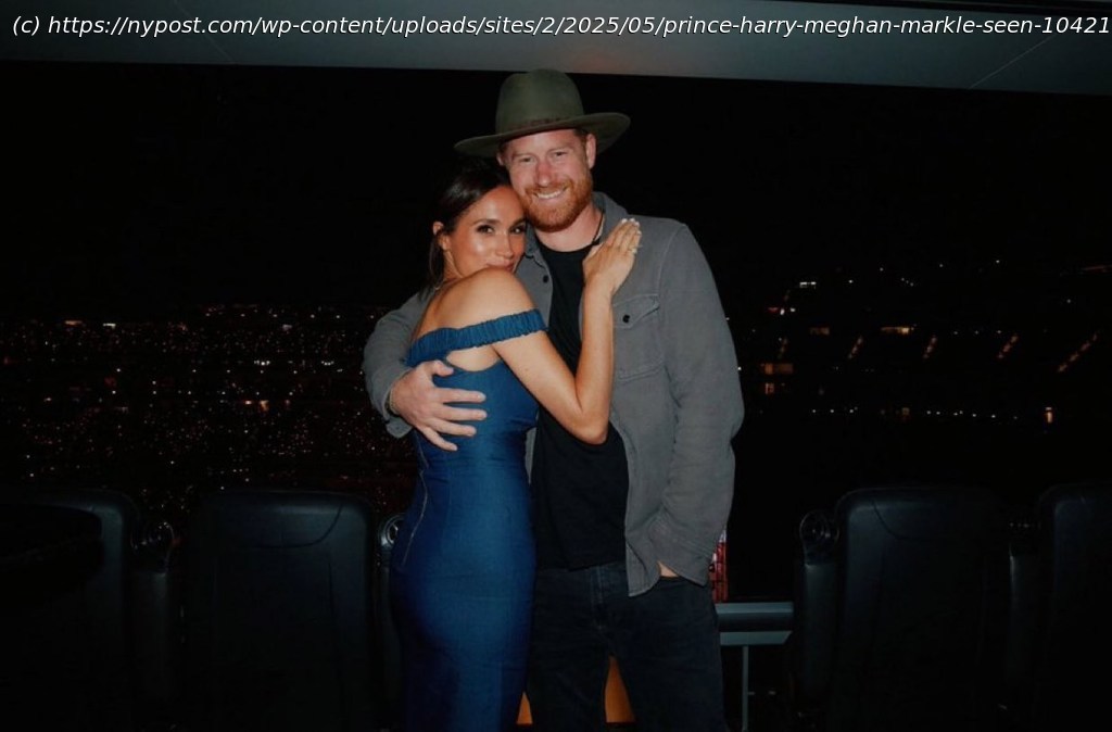 In the image, Markle, 43, and Harry, 40, hugged one another in a private suite. The “Suits” actress, donning a blue off-the-shoulder dress, flashed a smile as she placed on hand on the royal’s chest.