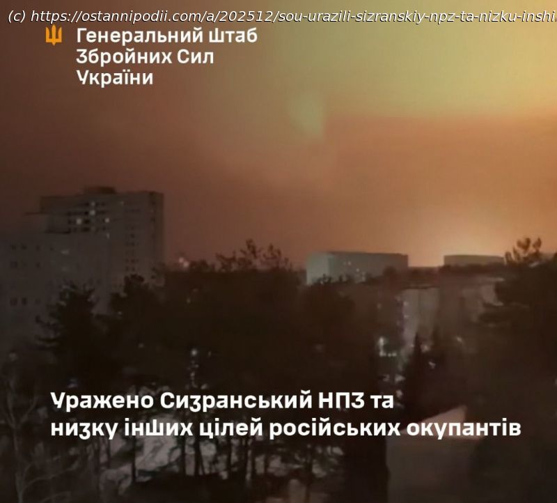 Про це повідомили в Генеральному штабі ЗСУ.Сизранський НПЗ