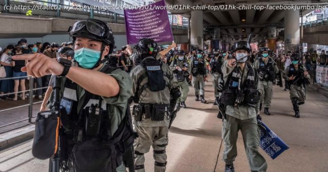Hong Kong police invoked Beijing’s new security law for the first time to arrest protesters on the anniversary of the city’s handover to China.