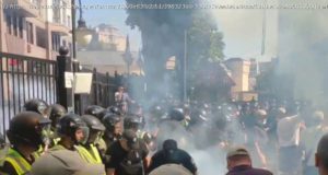 "Нацкорпус" забросал фаерами двор "дома Зеленского" в Киеве (видео)
