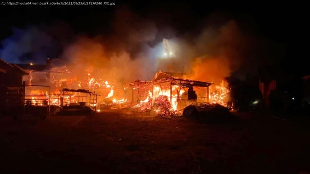 Polizeimeldung Feuerwehr-Großeinsatz bei Brand auf Bauernhof in Stanz