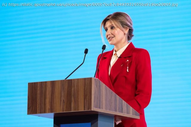 Украина — на русском Елена Зеленская в брючном костюме модного оттенка выступила на саммите — яркий...