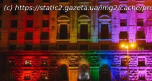 Здание КГГА подсветили в цвета флага ЛГБТ