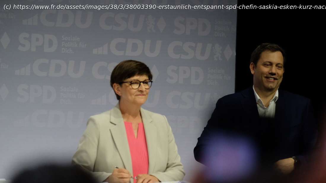 Berlin – CDU, CSU und SPD haben den vorletzten Schritt zur neuen Regierung gemacht: Die vier Parteichefs haben den Koalitionsvertrag unter dem Motto „Verantwortung für Deutschland“ unterzeichnet. Die fototrächtige Formsache im Berliner Gasometer hatte wegen der kurz zuvor bekannt gewordenen Minister-Liste der SPD einige Brisanz. Denn: Co-Parteichefin Saskia Esken unterschrieb den Vertrag einer Regierung, der sie selbst nicht angehören wird. Esken wollte dem Vernehmen nach gerne Ministerin werden, konnte sich aber nicht gegen ihren Amtskollegen Lars Klingbeil durchsetzen. Umso erstaunlicher, dass Esken alles andere als bedrückt wirkte.