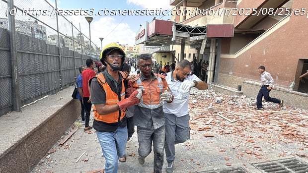 Deir al-Balah, Gaza Strip — An Israeli airstrike hit the fourth floor of southern Gaza’s main hospital Monday, killing at least eight people including several journalists, hospital officials told CBS News. An Official with the civil defense rescue agency in Hamas-run Gaza said later that at least 15 people were killed in the strike in total.
