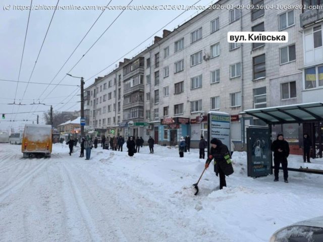 У Житомирі комунальні служби працюють у посиленому режимі через тривалий снігопад та ожеледицю. Під час протиожеледної обробки та прибирання вулично-дорожньої мережі діє чітка черговість.
