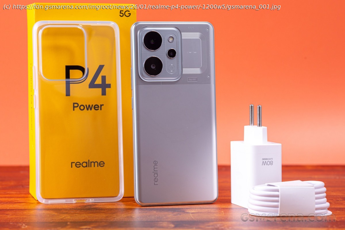 The Realme P4 Power ships with a case, a USB-C to USB-A cable, and an 80W SuperVOOC charger.